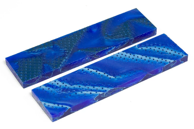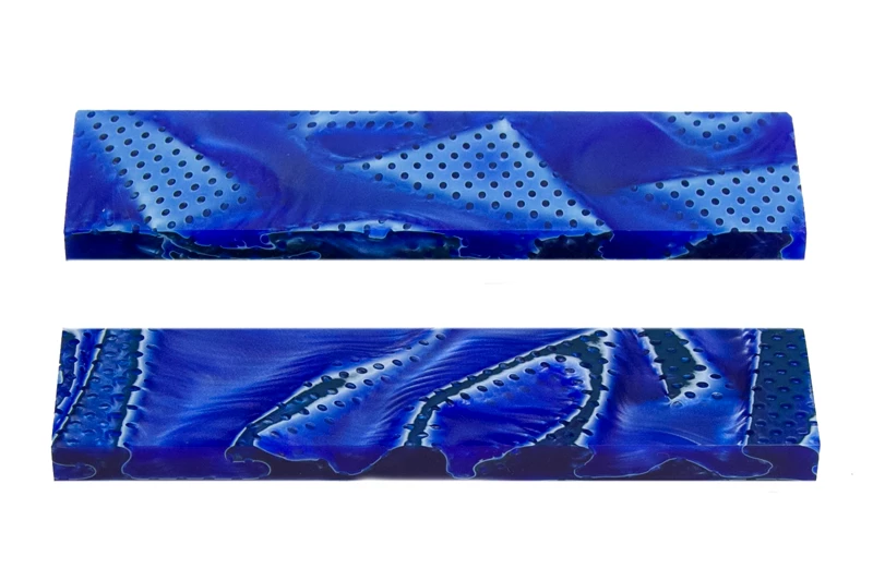 Shown finished with the thin top layer sanded off. Top blank is unsanded and bottom sanded.