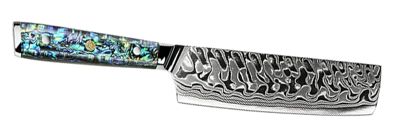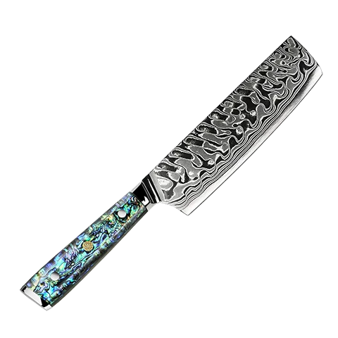 This WW Dojo Nakiri Knife is made by for us out of AUS-10 Damascus Steel and thus offers one of the best cutlery steels on the market at an extremely competitive price. These Full Tang knives will provide you a lifetime of service.