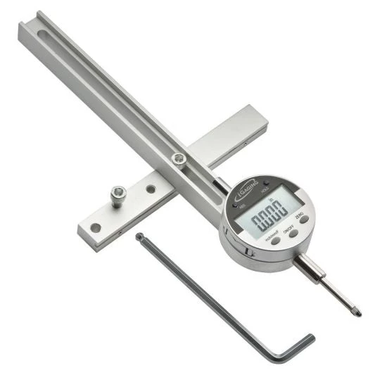 Calibrate with confidence! This handy device is ideal for tasks including fence alignment, table saw alignment and setting jointer depth. The indicator unit is affixed to a slide bar for on-the-fly adjustment. The slide bar sits flat along the table surface when the miter bar is positioned in a miter slot. Indicator display is adjustable for easy reading during different applications.