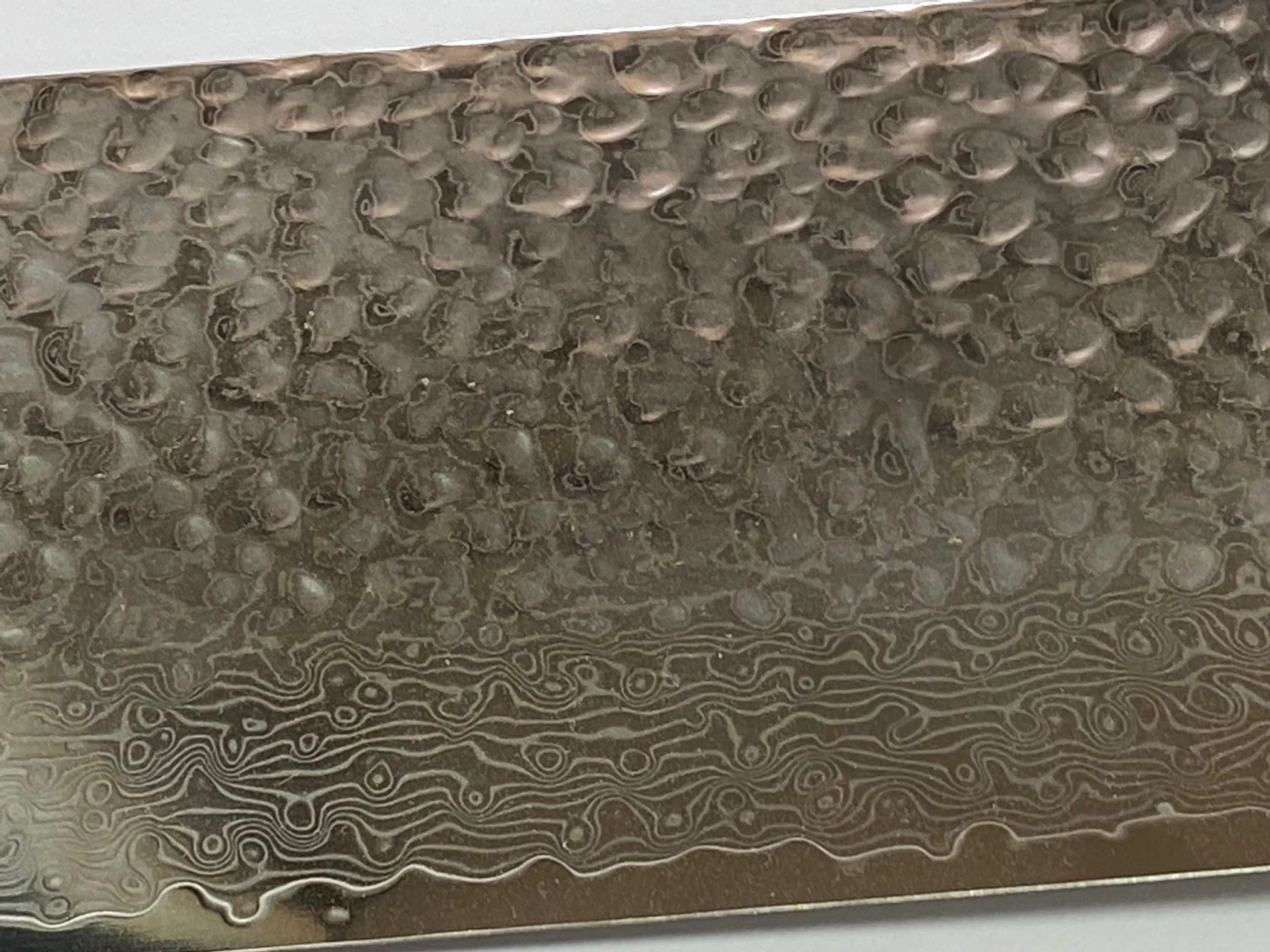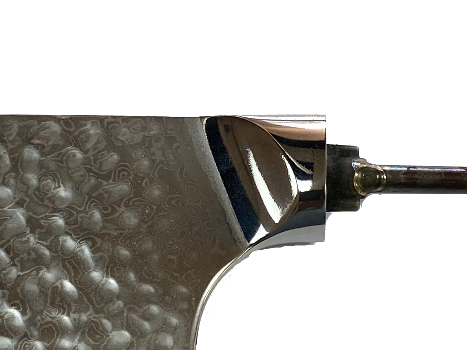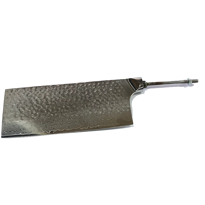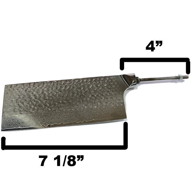 VG10 Damascus Hidden Tang 7 1/8″ elegant Raindrop Pattern Cleaver. The knife is polished to a mirror finish to  bringing out the unique pattern. It’s integrated bolsters provide a smooth, sturdy flow to the handle area.Â