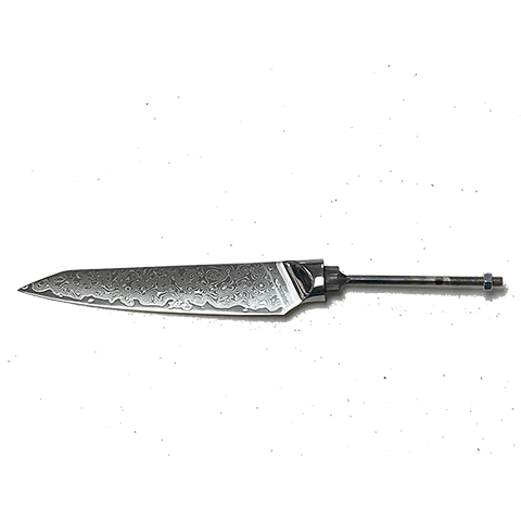VG10 Damascus Hidden Tang 5″ elegant Raindrop Pattern Utility Knife. The knife is polished to a mirror finish to  bringing out the unique pattern. It’s integrated bolsters provide a smooth, sturdy flow to the handle area.Â