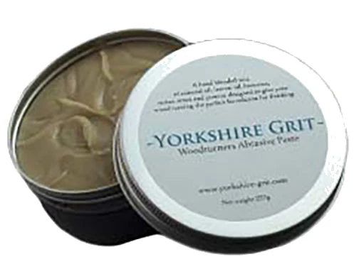 Yorkshire grit is an abrasive paste formulated to give a fine keyed surface to your turnings, prior to applying your finish of choice. It consists of pharmaceutical grade ingredients, including mineral oil, beeswax and ultra fine grinding powders. These are then carefully blended (without the use of solvents or other strong smelling and potentially harmful chemicals) to produce a creamy abrasive paste. Yorkshire Grit acts like ‘liquid sandpaper’, reducing the scratches left by the initial dry sanding* and eliminating the increasingly fine dust produced by traditional sanding at higher grits. On most woods sanding up to 240 grit is sufficient to start with our paste. The grinding powders we use are designed to break down to a finer mesh as they are used, while still maintaining a cutting edge, so as the friction reduces the mesh size of the grit it is effectively forming a finer abrasive. In comparison tests we believe the finish is at least equivalent to 1000 grit.