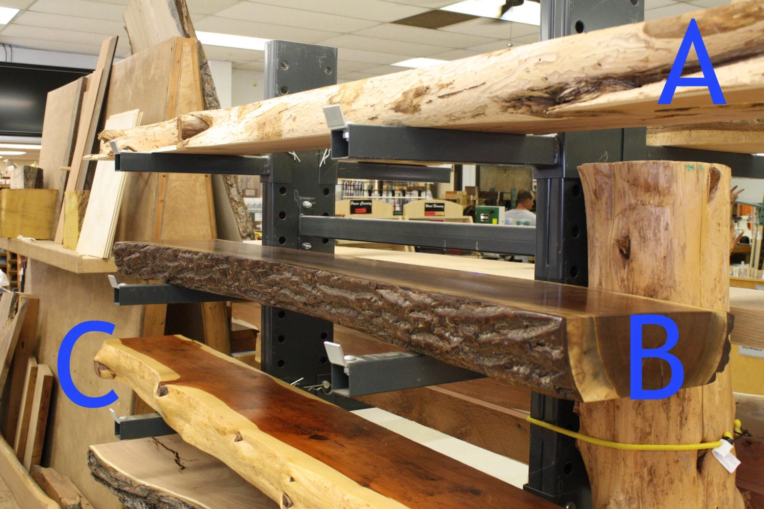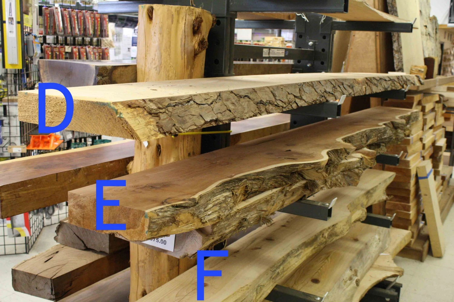 B- Walnut Natural Edge Mantle 4″x 12 avrg “x 8′ Â E1-14″, E2-13 1/4″ Middle- 11”, Â Finished w/satin Arm-R-Seal