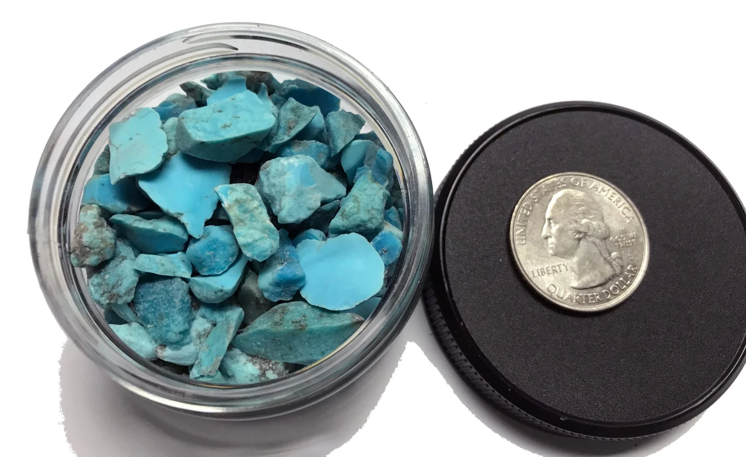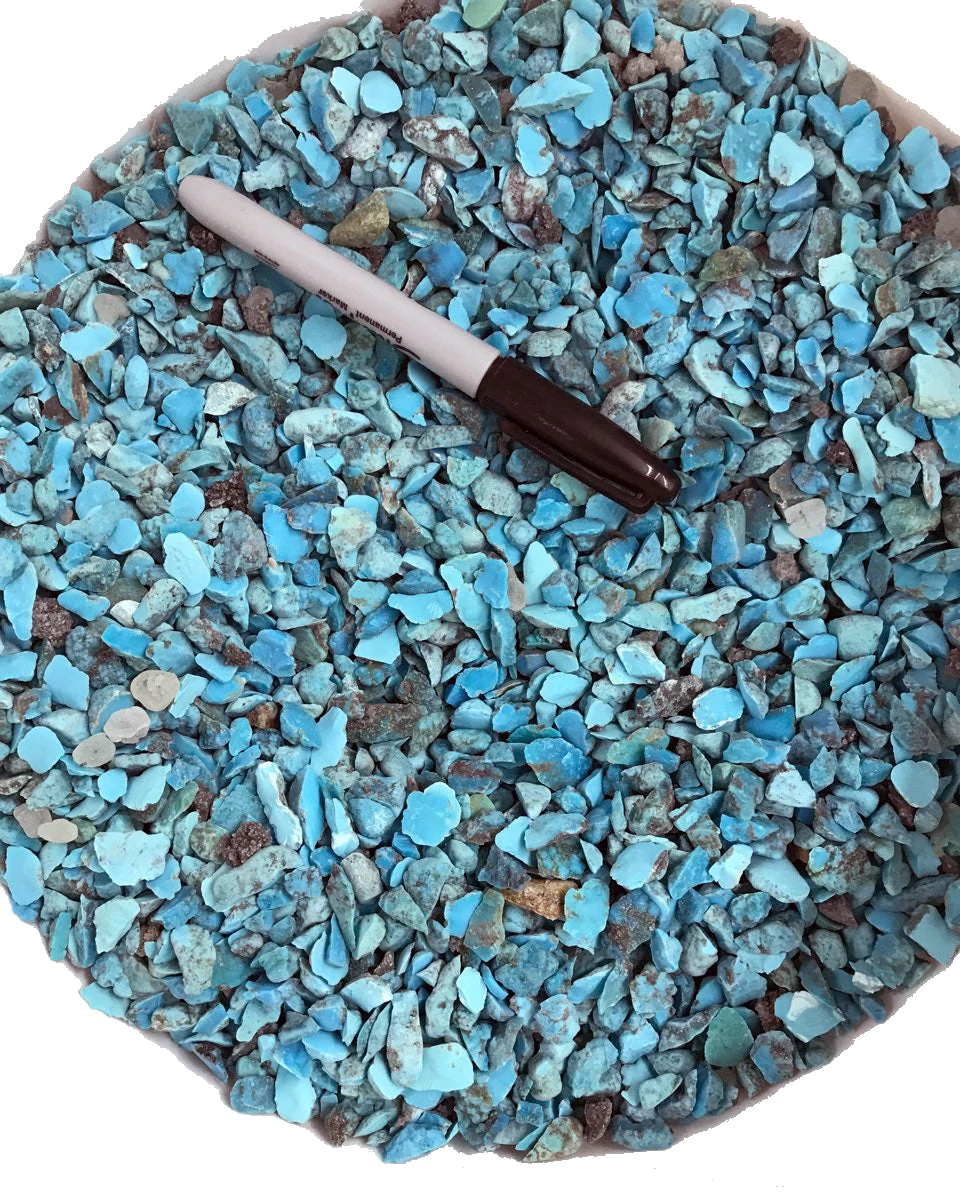 Large Size Turquoise chips mostly blue with a very little green mixed in. 2 ounces