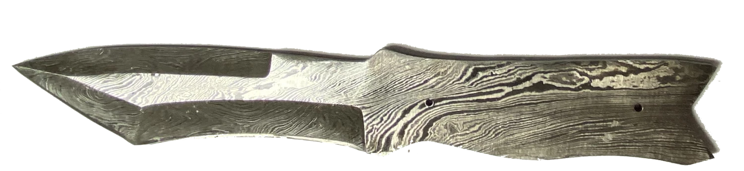 These blanks are full length Damascus (Not the cheap etched blades that many people are passing off as genuine Damascus blades. These blades have a high carbon core then over 250 layers of folded carbon steel with a high nickle content on top. These blanks will sharpen and hold an edge like mad. We recommend washing and drying after use and then placing a couple of drops of oil to prevent rusting (Food Safe Oil recommended). The Nickle makes for a high contrast between layers. You can bring out the contrast in areas that were not dipped (Gray areas – end of handle) with a mild acid mixture or by leaving it sit in a coke for 3-4 hours. Be sure to neutralize the acid, clean and oil before using. Do not try this until you read more about etching process on the front page of www.woodworldtx.com under Etching Damascus in the menu on the left of the page.