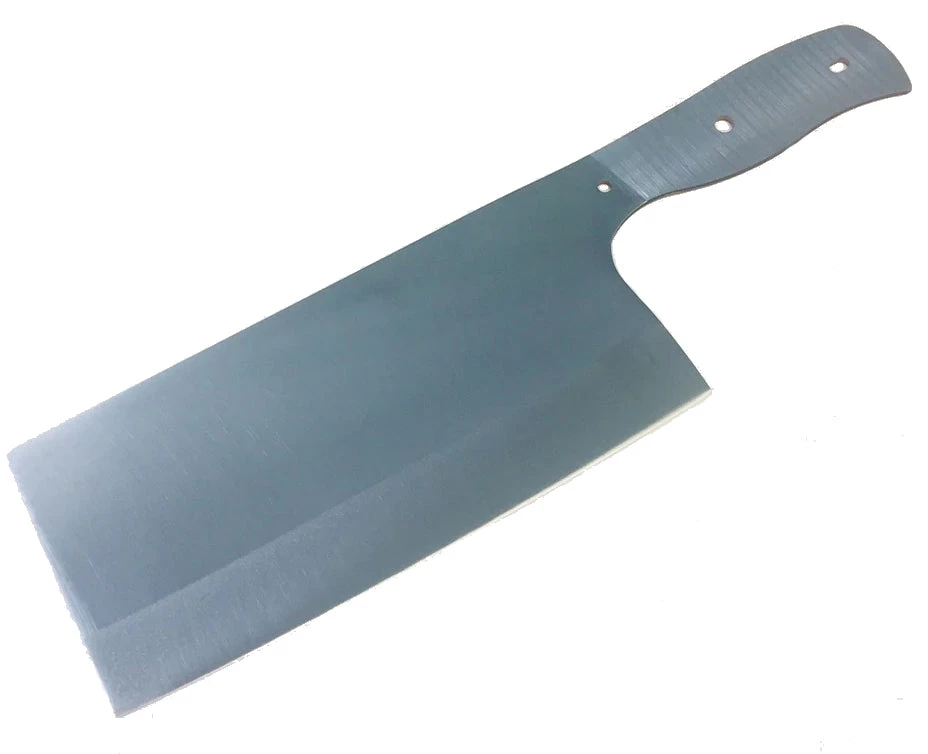 If you liked our Cutlass/Butcher blank you will love this rectangle chopper/cleaver. Perfect for chopping herbs or veggies and slicing meats paper thin.  It comes sharpened on the cutting edge perfect from kitchen and BBQ to campsite this blank will be a great addition to your arsenal to build and will bring a smile to the user and a curious look from a beholder. This is a great canvas for your customization.Â