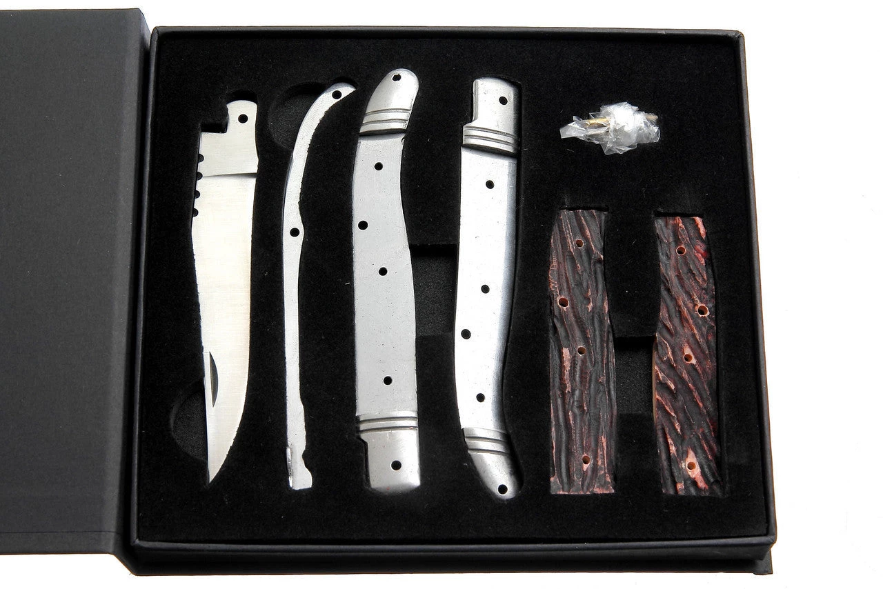 This high quality Laguiole knife kit comes with a stainless frame and is heavy constructed insuring a lifetimes of use. A great gift as a kit or a completed knife. Hard to beat for under $20.00