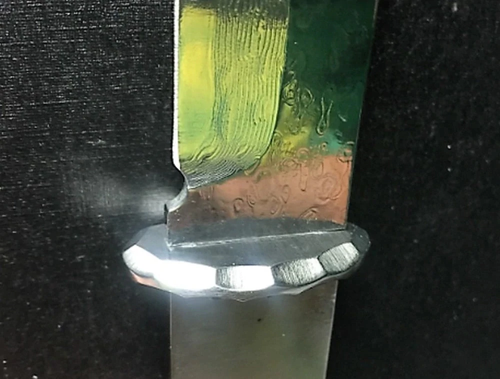 This is a great 9.5″ overall length stainless San Mai Damascus Tanto kit. This kit comes with perimeter cut “black ebony wood” not sure of the actual species. This kit was designed for the simplest of tools to finish.  Comes with screws for handle and gift box. A very unique Damascus pattern and stainless that the metal doesn’t require and special care. Limited Edition.Â