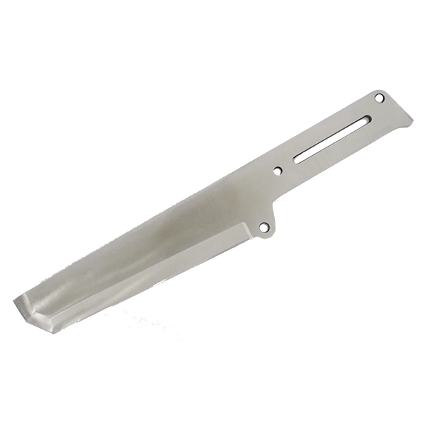 At 3/16 of an inch thick, this is a very sturdy piece of steel! This blade comes in both satin and stonewashed. The handle is intended to be your own paracord, but i’m sure it would not be hard to put a nice burl wood handle onto it. This would be a great camping knife for all the twigs and branches that need to be chopped!