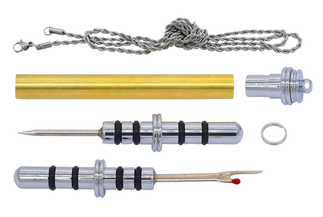 Our best-selling seam ripper kit is now available in this ultra-handy and supremely stylish magnetic necklace. The seam ripper is reversible so she can easily and safely use or store it wherever and whenever she needs it. Includes a long 36″ chain so she can effortlessly use the seam ripper while its around her neck. Blade is made from durable manganese steel.