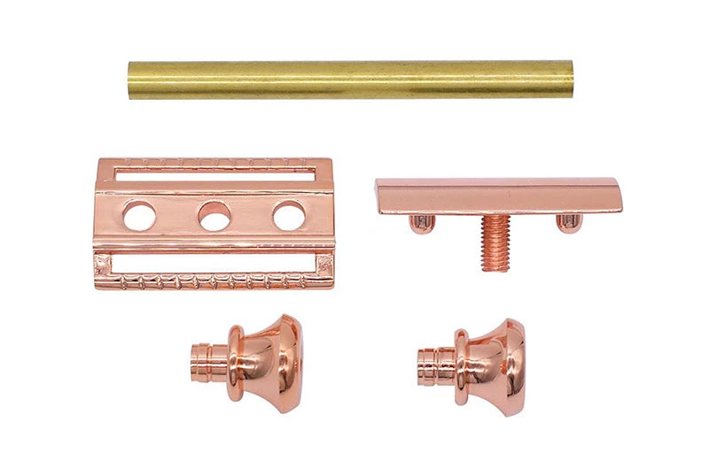 These Safety Razor Kits are Copper plated. The double edge safety razors offer an extremely close shave and an enjoyable traditional shave experience.Â