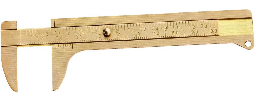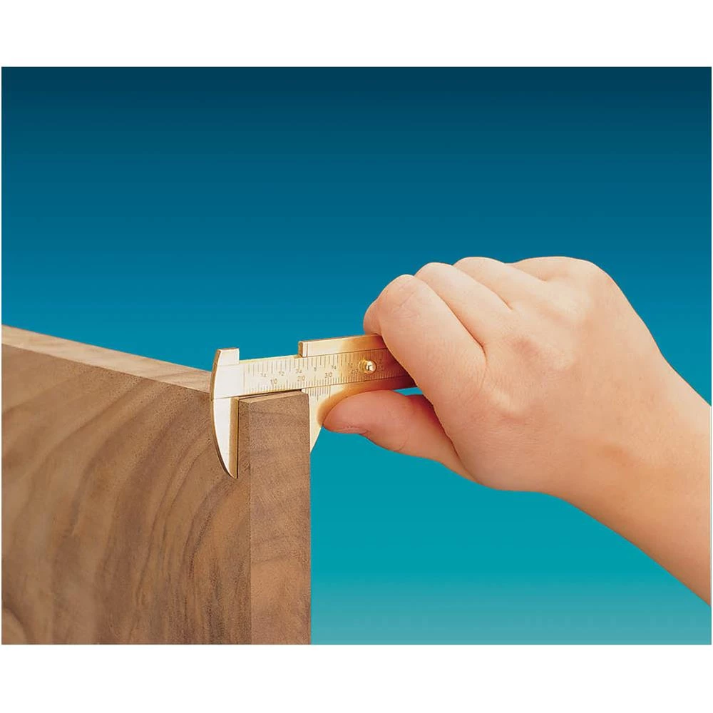 Beautiful solid brass 4″ caliper with sliding dovetail way and rigid construction make this measuring instrument indispensable for any craftsman. Small size is great for the tool box or a pocket. Measuring range is 0 – 4″/100mm in 1/16″/1mm graduations. Includes vernier scale.