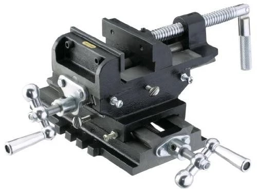 This vise features an exclusive slide bar to prevent jaws from tilting up or sideways when tightening. Adjustable gibs take up any slack on both top and bottom slides. Use this vise on your drill press for cutting keyways and doing light milling jobs.