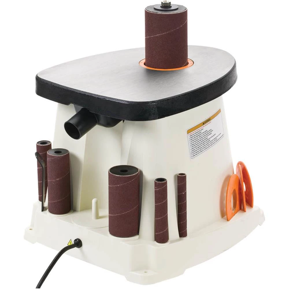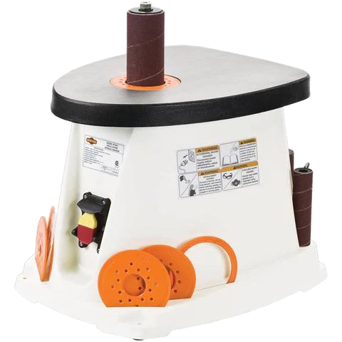 This bench top Oscillating Sander is ideal for smoothing edges after cutting with a band-saw or scroll saw. Fifty eight oscillations per minute ensures even sanding and six sanding sleeve diameters let you sand a full range of inside curves down to 1/2-inch diameter. Includes: • 5 rubber sanding drums: 3/4″, 1″, 1-1/2″, 2″ and 3″ • 6 sanding sleeves: 1/2″, 3/4″, 1″, 1-1/2″, 2″ and 3″ • 6 table inserts: 1/2″, 3/4″, 1″, 1-1/2″, 2″ and 3″ • 3 spindle washers: 5/8″, 7/8″ and 1-3/4″