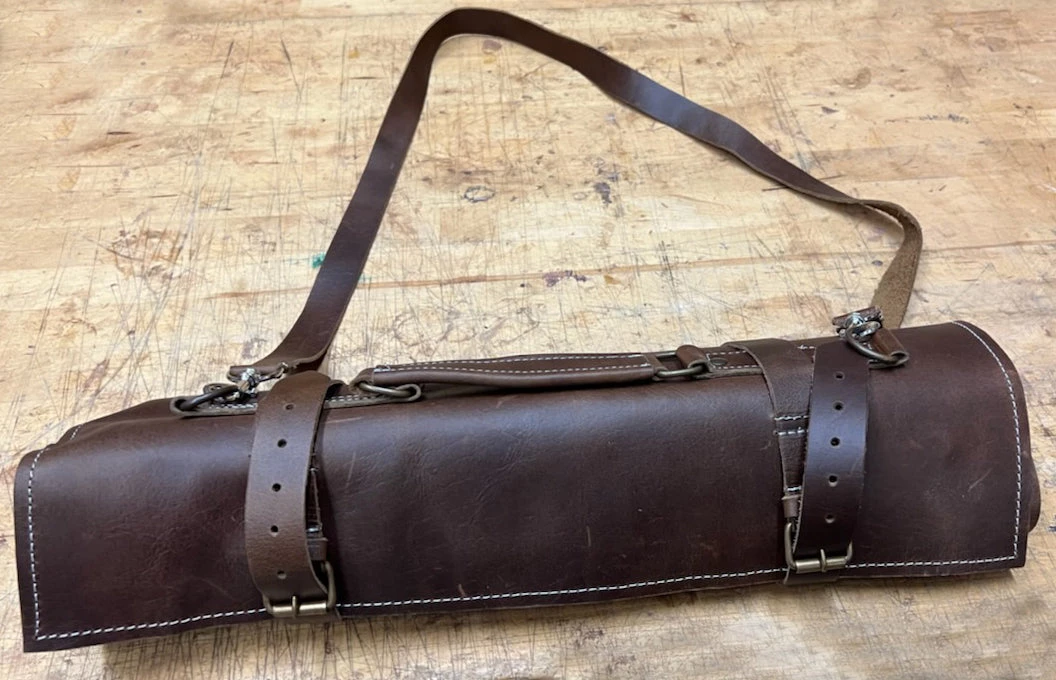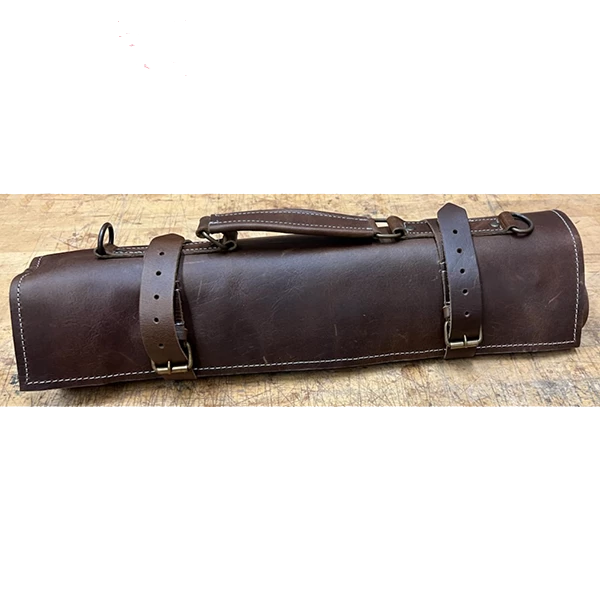 Custom Made Full Grain Rustic Leather Tool / Knife Roll with Carry Handle and Shoulder Strap