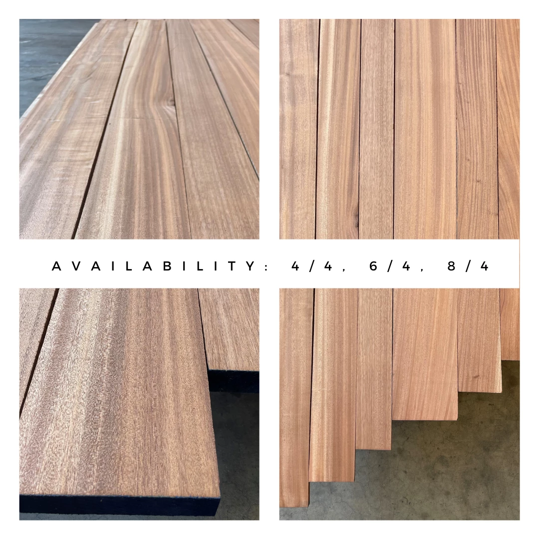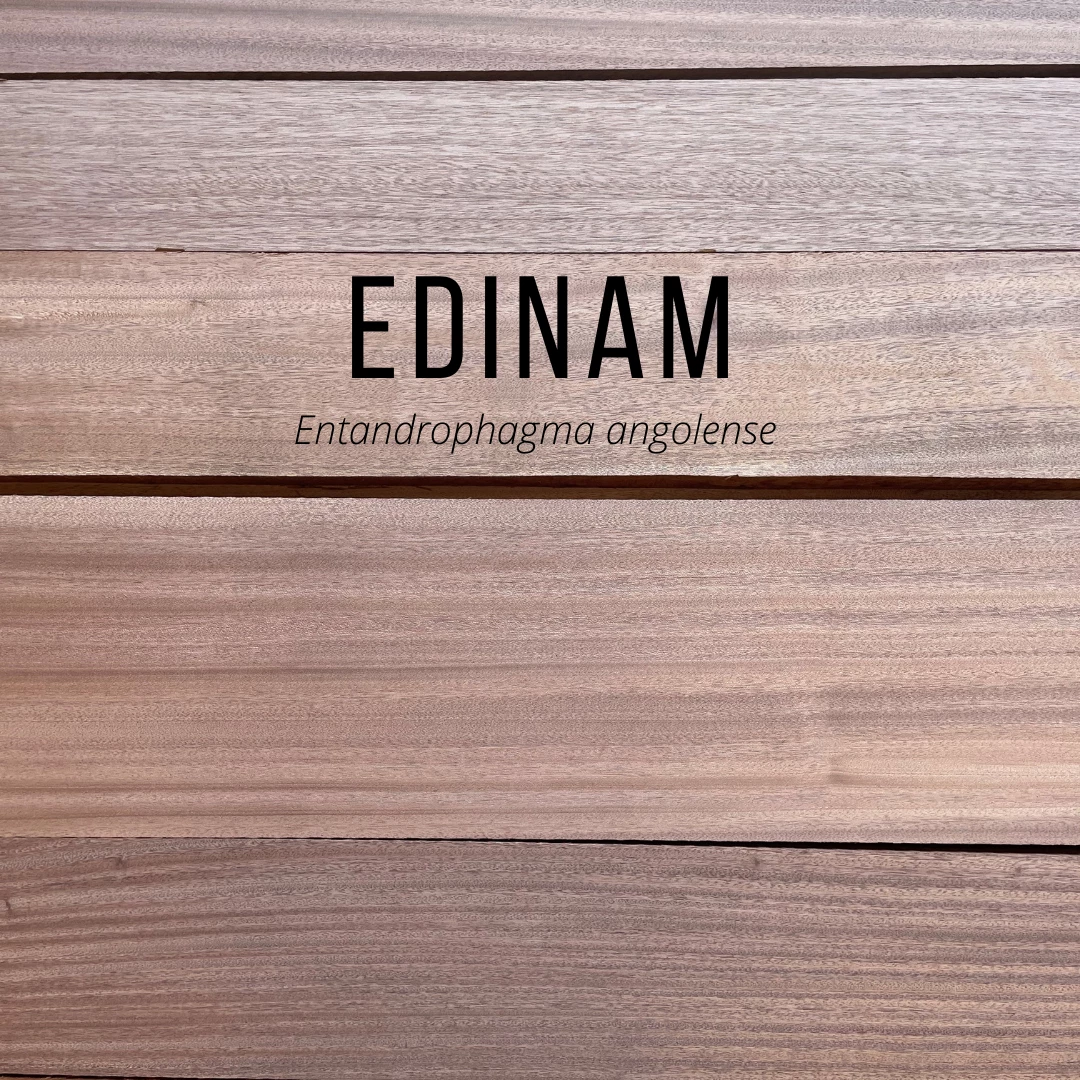 Edinam, also called Tiama is a subspecies of African Mahogany and is harvested in western tropical Africa. It is red brown, sometimes with pale pink hues with distinctive ribbon-like striping. It has a keen resemblance to African Mahogany and Sapele, but at a fraction of the cost. Â