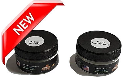 There are two main types of phosphorescent (glow) pigments: Jimmy Clewes Glow powders are a synthetic type of a phosphorescent pigment which is a grown crystal that is meticulously ground and treated. It glows 20-30 times longer than the other type on the market and has a much shorter excitation time (usually 20 minutes or less) for full glow. Â Sun Light or Fluorescent lighting is all that is required to activate this product.