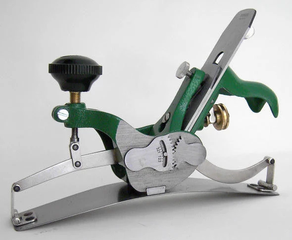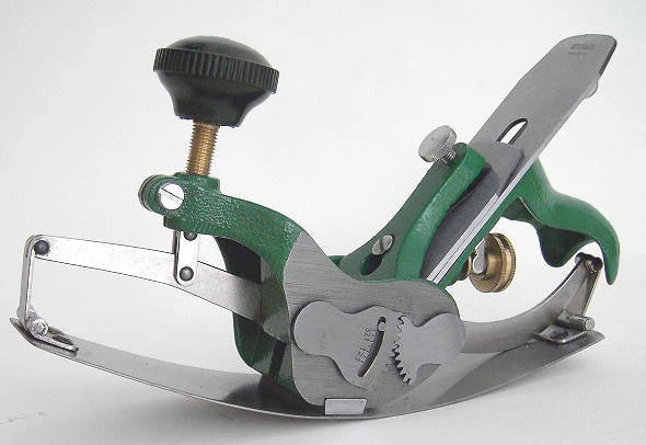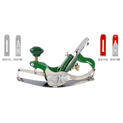 A reproduction of Stanley’s discontinued 113 with distinctive toothed side gearings. The steel sole adjusts concave to convex and is dovetailed into its cast iron body. Excellent for boat and chair building. 1-3/4″ wide blade and 10-1/8″ overall length. Made in Germany.