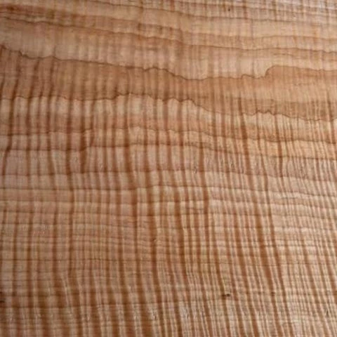 Curly Maple is not actually a species, but simply a description of a figure in the grain—it occurs most often in soft maples, but is also seen in hard maples. It is so called because the ripples in the grain pattern create a three dimensional effect that appears as if the grain has “curled” along the length of the board. Other names for this phenomenon are: tiger maple, fiddleback maple, (in reference to curly maple’s historic use for the backs and sides of violins), or flamed maple