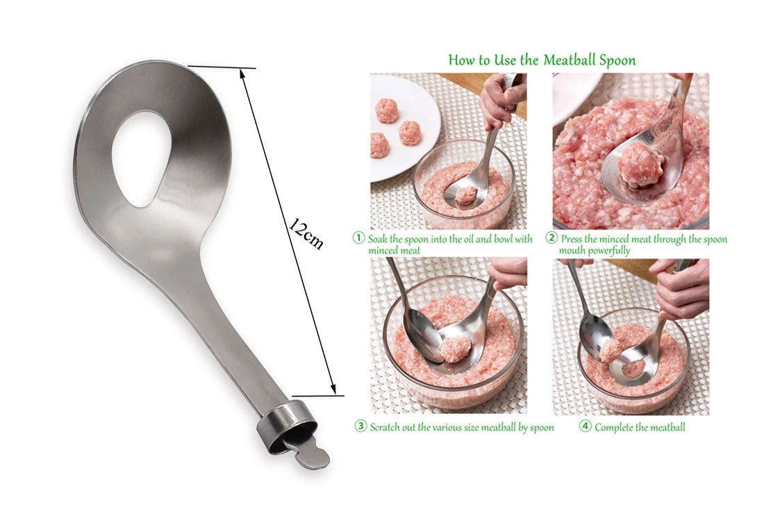 Stainless steel meatball spoon kits. Easy to use–operate easily for you and meat spoon maker, which slightly press the spoon in the minced meat, then use another spoon scrape down, finally you can get a perfect meatball. This kit is both easy to turn and easy to assemble and creates an eye catching utilitarian finished product.